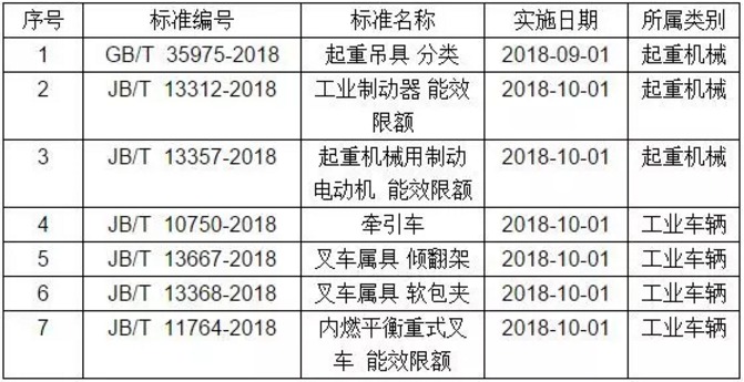 国家标准公告(2018年第2号文件)“关于批准发布291项国家标准的公告”及中国机械工业联合会文件(中机联标【2018】50号)“关于发布70项机械行业标准的通告”其中有关“起重机械”和“工业车辆”新批准颁布的标准内容如下: